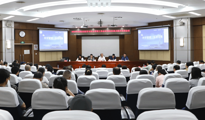 二級單位分管實驗室安全建設和大型儀器開放共享的負責人及院級管理員、校級實驗室管理與技術安全督導員,實驗室與設備管理處全體人員等110余人參加會議。