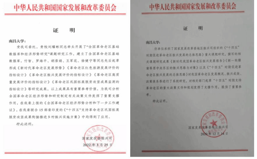 社會服務顯擔當。建立服務智庫的數據平臺和專家基地。建成全國首個“中國革命老區數據中心”,累計監測數據20余萬條,出版全國首套《中國革命老區發展報告》;打造“兩山”轉化國家級專家服務基地(人社部),服務革命老區生態產品價值實現,制定了江西省中小企業發展環境第三方評估方法和標準并開展評估工作,產生超過3000萬元的經濟效益。承擔了國家發展改革委“‘十四五’時期促進革命老區振興發展研究”重大招標課題,10余件咨政成果被國務院《經濟要參》以及國家部委等采納,部分成果獲得國家領導人批示,80余件調研報告獲省部級領導肯定性批示,產生超過2000萬元的經濟效益。