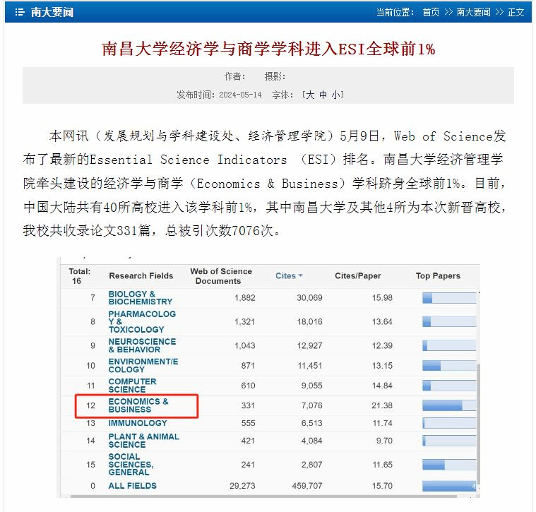 “雙一流”建設當先鋒。獲批統計學一級學科博士學位授權點;理論經濟學、工商管理在第五輪學科評估進入B類行列,經濟學與商學學科進入ESI全球前1%。