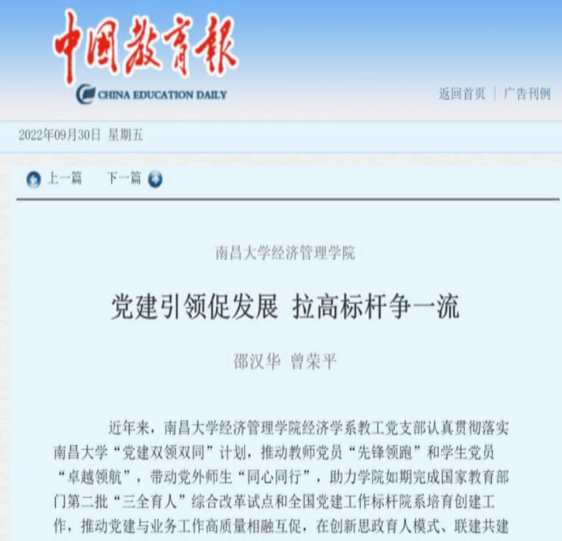 中國教育報介紹了經濟管理學院黨建引領促發展的經驗