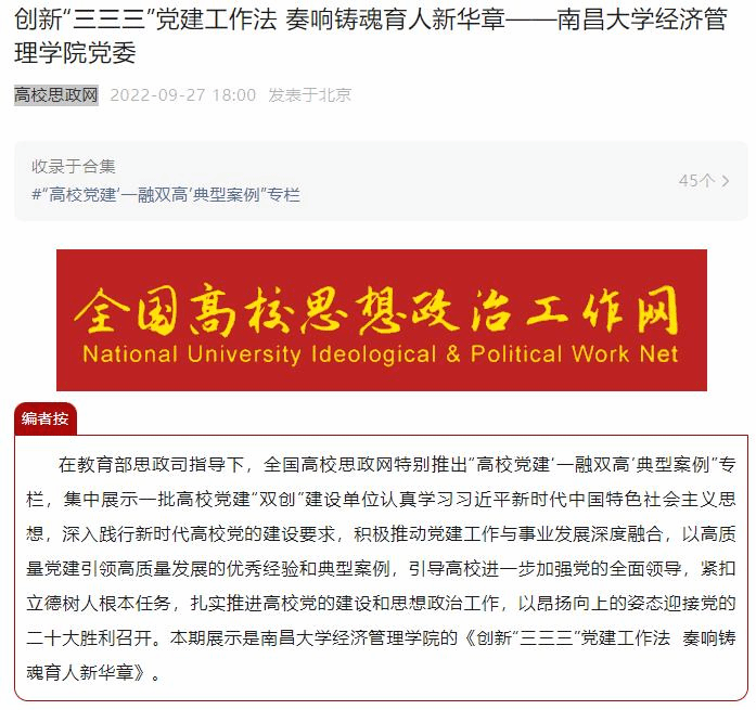圖:全國高校思想政治工作網專題報道“三三三”黨建工作法