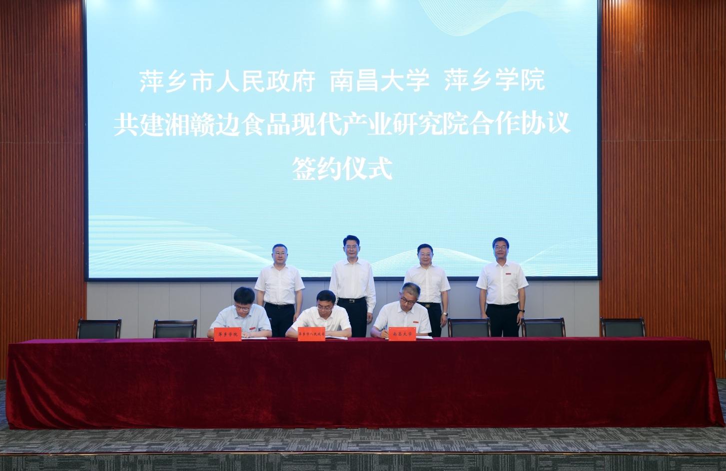 劉爍對南昌大學長期以來對萍鄉建設發展的關心和支持表示感謝。他指出,研究謀劃建設湘贛邊食品產業研究院是萍鄉人民期盼已久的大事,對服務國家戰略、建立特色產業體系、促進校地合作、推動產教融合具有重要意義。希望三方不斷探索新模式、新路徑,充分發揮好南昌大學在食品學科的龍頭效應,在共建湘贛邊食品產業研究院過程中,通過建設一個“1個研究院+N個研究所和科研團隊”的實體、一個帶動萍鄉在綠色食品產業科技創新能力的平臺、一項更好推動科研成果轉移轉化的創新機制,加快推動萍鄉市綠色食品產業賽道快速發展,進一步輻射長株潭,搶占更廣闊市場。萍鄉市委、市政府將為湘贛邊食品產業研究院健康發展提供最好的服務、最足的保障、最優的環境,攜手共創互惠互贏的美好未來。