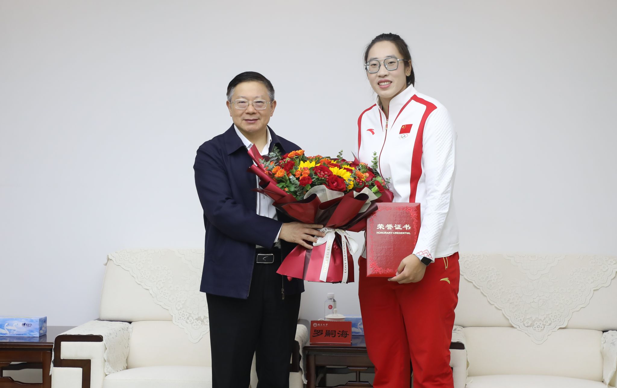 本網訊(記者程慧萍 學生記者陳文清)10月24日,校黨委書記羅嗣海,校長、中國科學院院士陳曄光分別看望慰問2024年巴黎奧運會田徑女子鐵餅亞軍、我校2019級研究生馮彬。