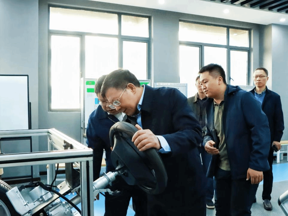 羅嗣海先后走訪學生實訓室、課外科研實驗室及多功能教室,詳細了解數字賦能教育教學、現代產業學院規劃建設、高素質應用型人才培養等關鍵領域工作開展情況,并與學院專業教師親切交談。