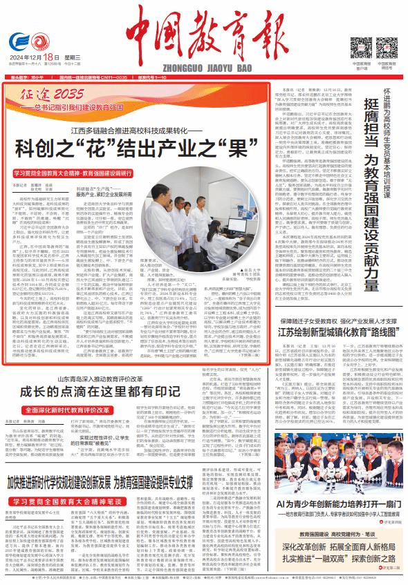 “到2035年建成教育強國,是黨中央作出的重大決策部署,是習近平總書記念茲在茲、殷切期盼的‘國之大者’。我們將全面貫徹落實黨的二十屆三中全會和全國教育大會精神,大力推動創新鏈、產業鏈、資金鏈、人才鏈深度融合,加強高校科學研究和技術研發,促進科技成果轉移轉化,更好服務江西經濟社會高質量發展。”江西省委教育工委書記、省教育廳廳長吳永明的話語擲地有聲。
