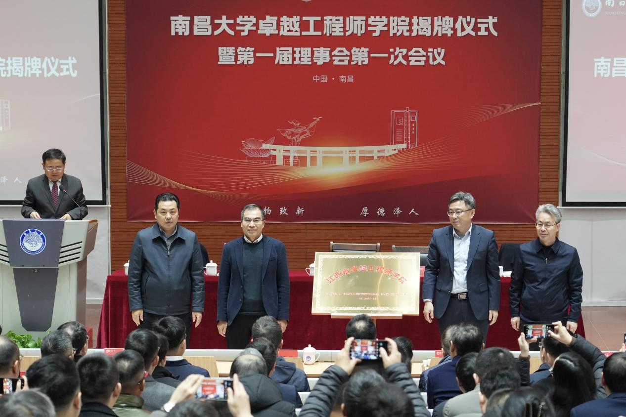 會上,領導嘉賓為南昌大學卓越工程師學院揭牌,并為卓越工程師學院理事長、副理事長、常務理事等單位授牌。