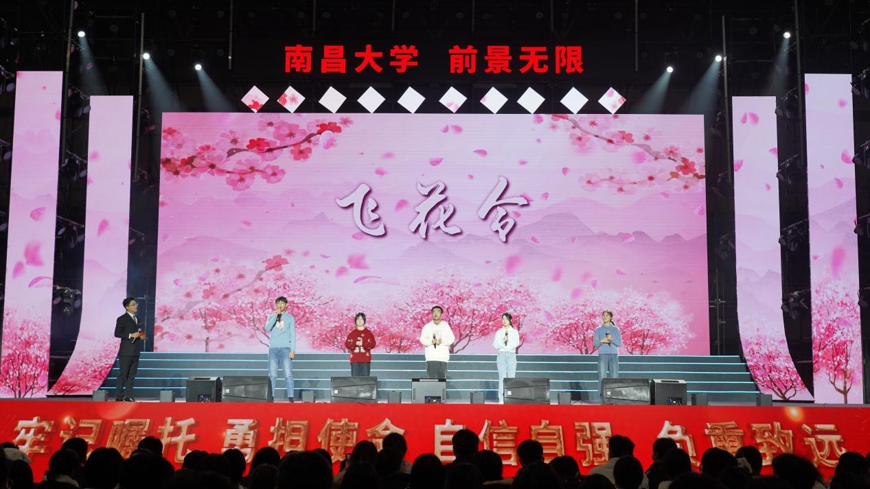 互動游戲《飛花令》拉開了晚會帷幕,節(jié)目通過詩歌傳遞了學校深厚的文化底蘊和學術(shù)氛圍。開場節(jié)目《大家一起來》,將觀眾熱情點燃;視頻《南大多美好》重溫了南昌大學的歷史發(fā)展足跡,展示了校園點滴美好;情景歌舞《大愛懷心》表達了師生真摯情誼;朗誦《偉大復興》則彰顯了廣大教職員工和青年學子對中華民族偉大復興的美好愿景;師生聯(lián)唱《風華》、老教授合唱《不了情》,悠揚的曲聲久久回蕩。