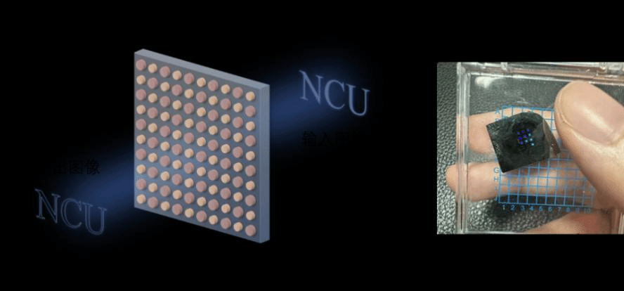 圖1.所設計的光學超表面圖像處理的示意圖和實物圖